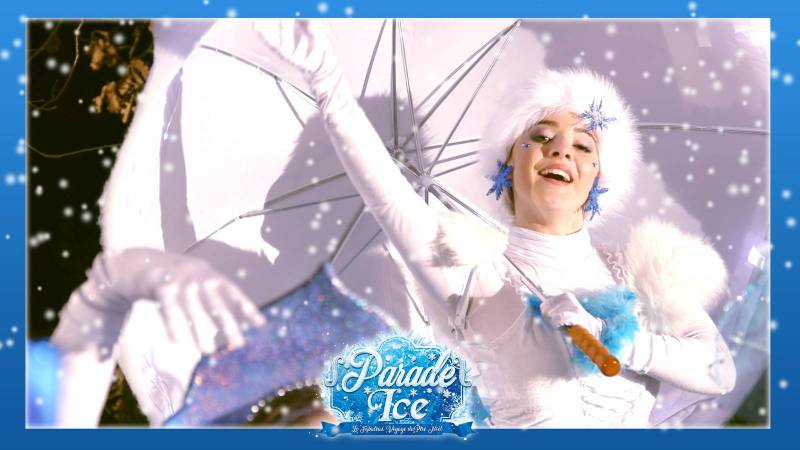 La Parade Ice : une parade féerique sur le thème de l'hiver, avec des costumes magnifiques, des personnages fantastiques, des artistes danseurs en déambulation, des push units décorés et sonorisés, le père Noël, des musiques traditionnelles et festives... un moment de rêve et d'émerveillement à ne pas manquer !